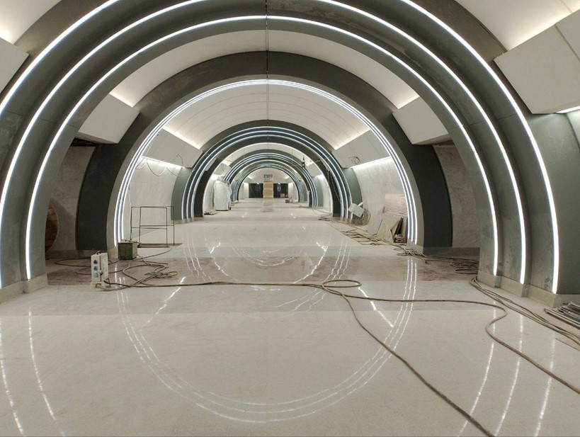 "На первой фотографии можно увидеть центральный зал. На двух последних — платформы со станционными дверьми", — передаёт канал.