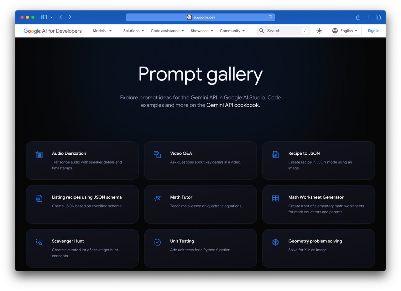 Внутри — идеи коротких инструкций, например для сценариев игр, и сложные промты для вайбкодинга или исследований. Можно сразу протестировать в AI Studio.