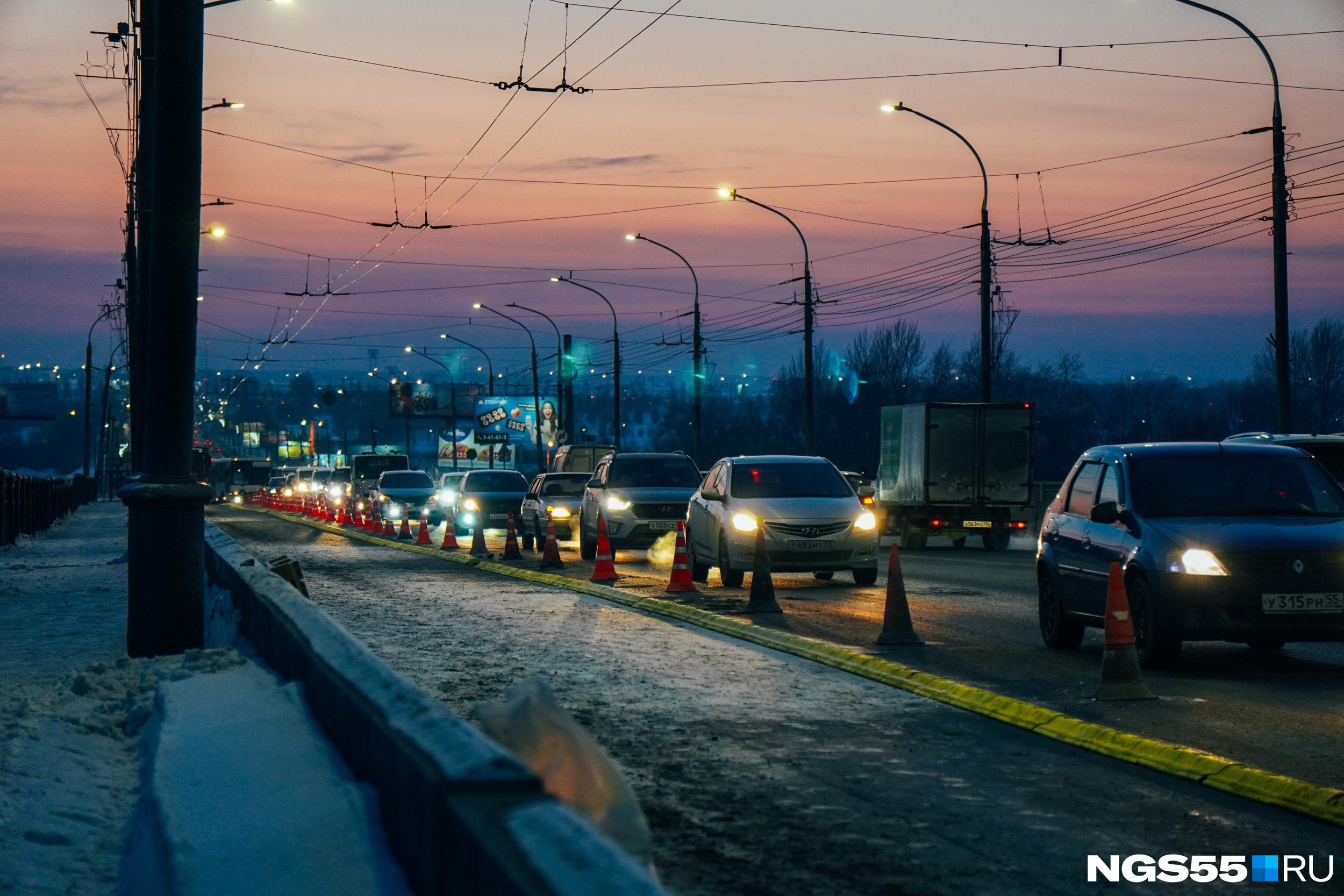 Вечером Омск сковали десятибалльные пробки