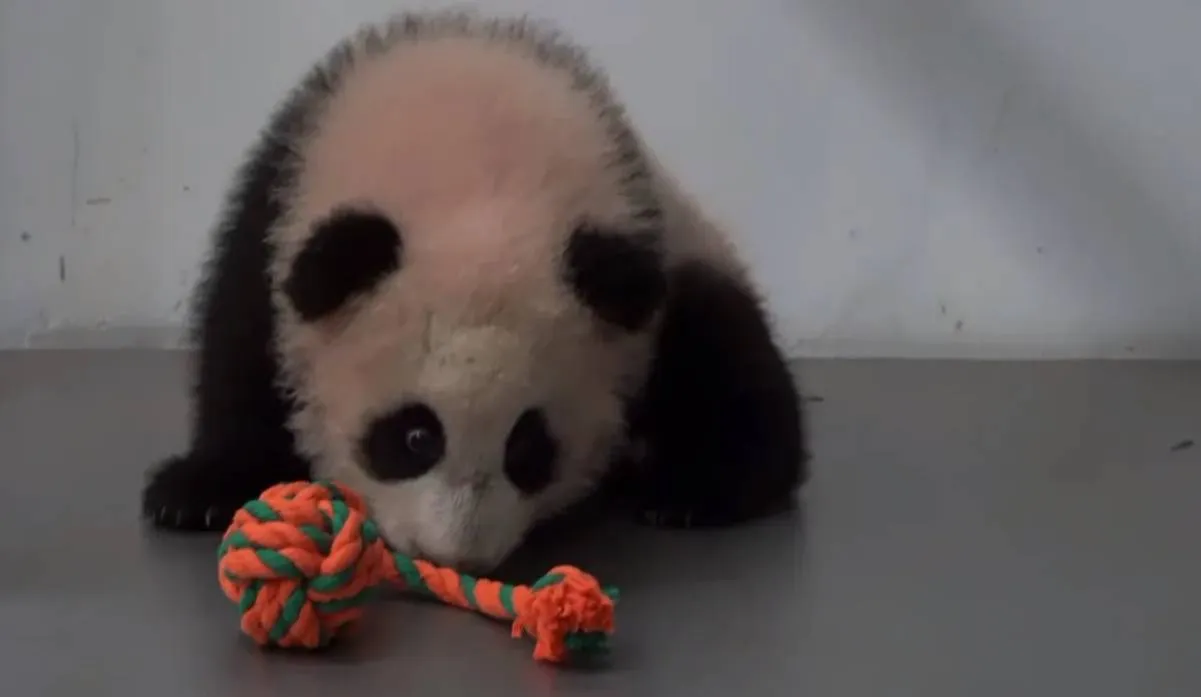 Малышка-панда из Московского зоопарка начала интересоваться игрушками. Видео © Telegram / Светлана Акулова