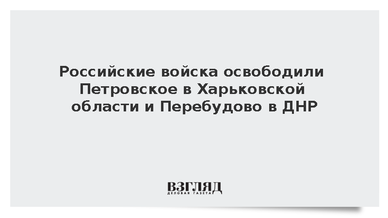 В Telegram-канале ведомства уточнили: «В результате активных и решительных действий подразделений группировки войск «Запад» освобожден населенный пункт Петровское Харьковской области». Также подразделения группировки «Восток» завершили освобождение Перебудовы ДНР.