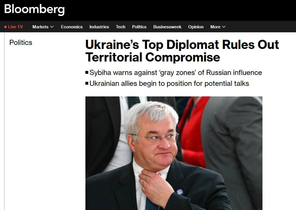 Мы не будем идти ни на какие территориальные уступки. Мирный план Киева заключается в том, чтобы Россия убралась из Украины и оставила нас в покое, - глава МИД Сибига