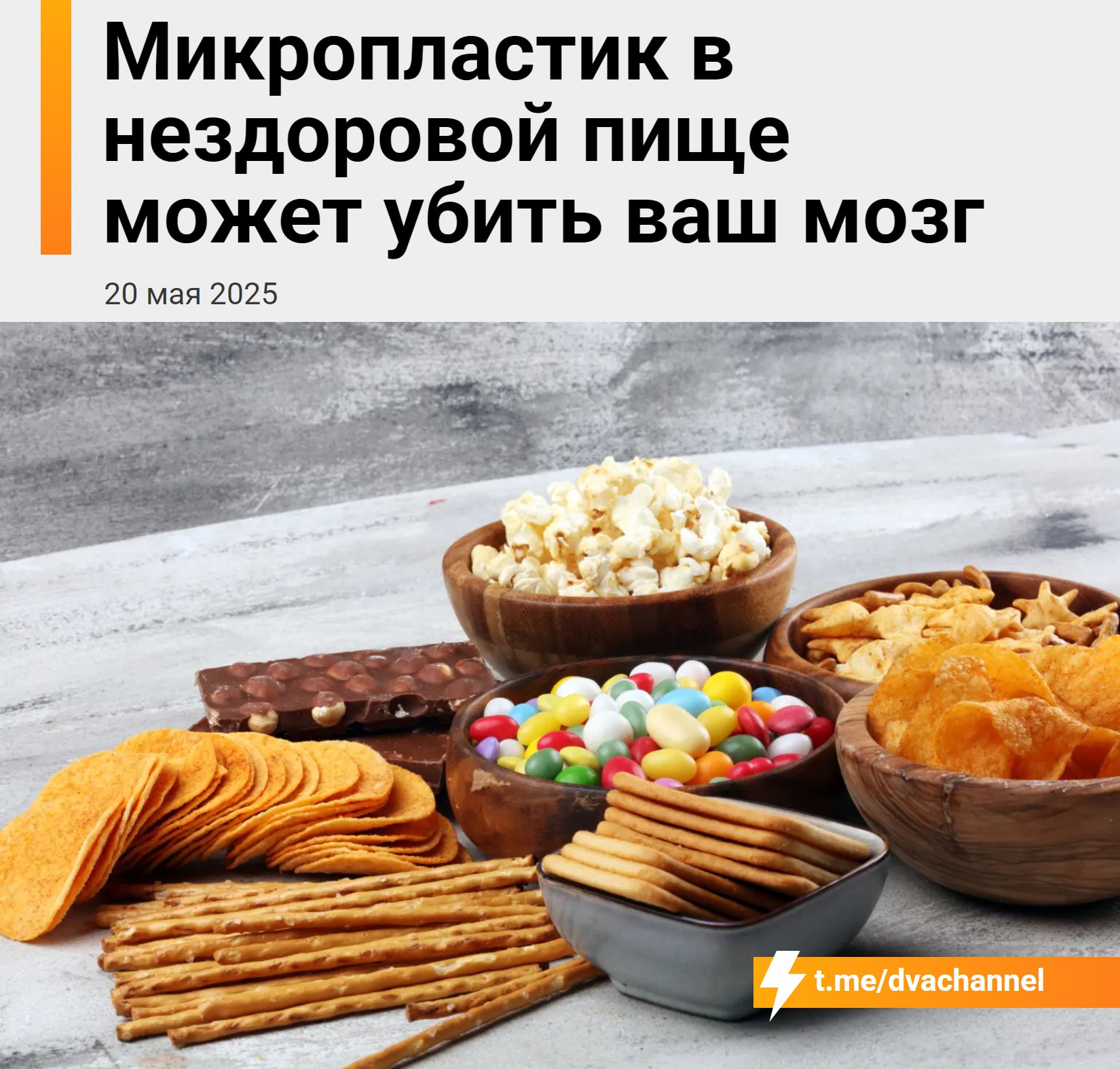 Этот микропластик и большое количество сахара усиливают негативное воздействие на мозг и психику. Чем больше вы едите такого хрючева, тем выше риск развития психологических проблем.