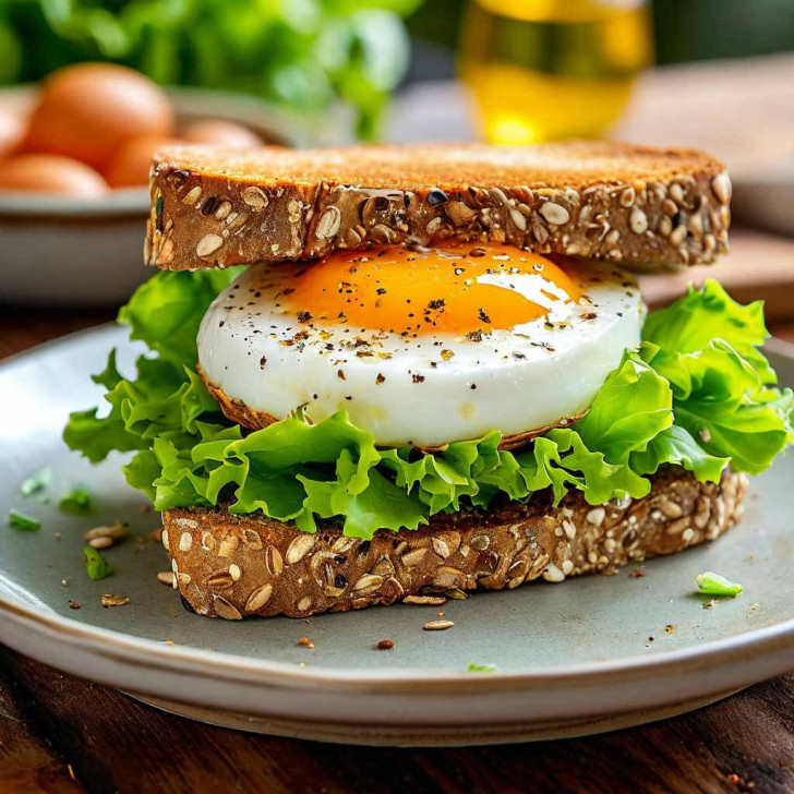 - Бутерброд с цельнозерновым хлебом, куриным филе, листом салата, огурцом и сыром, а также яйцо вкрутую.