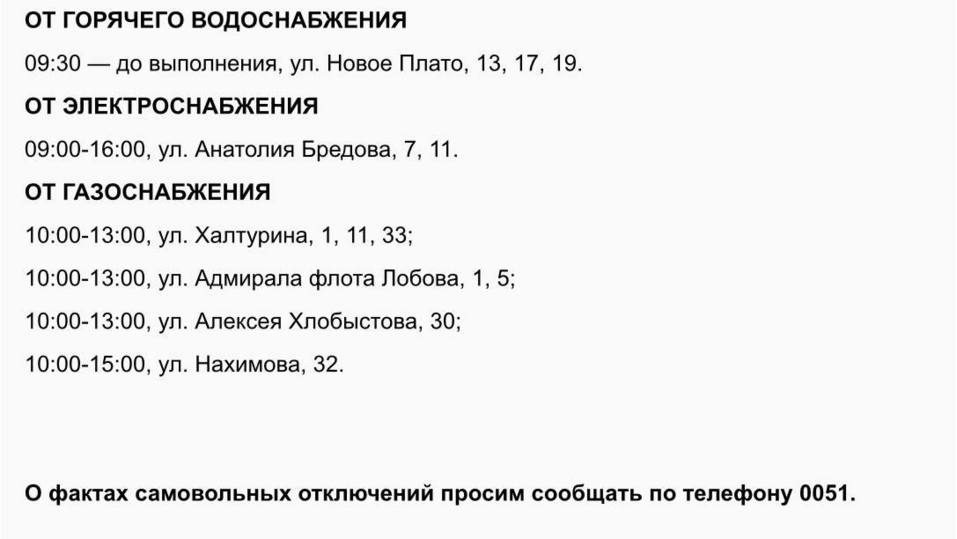 В целях обеспечения надежной и качественной работы систем водного, газового, теплового и электрического снабжения населения, администрация Мурманска сообщила на своем официальном сайте о плановых ремонтных профилактических отключениях 28 января.