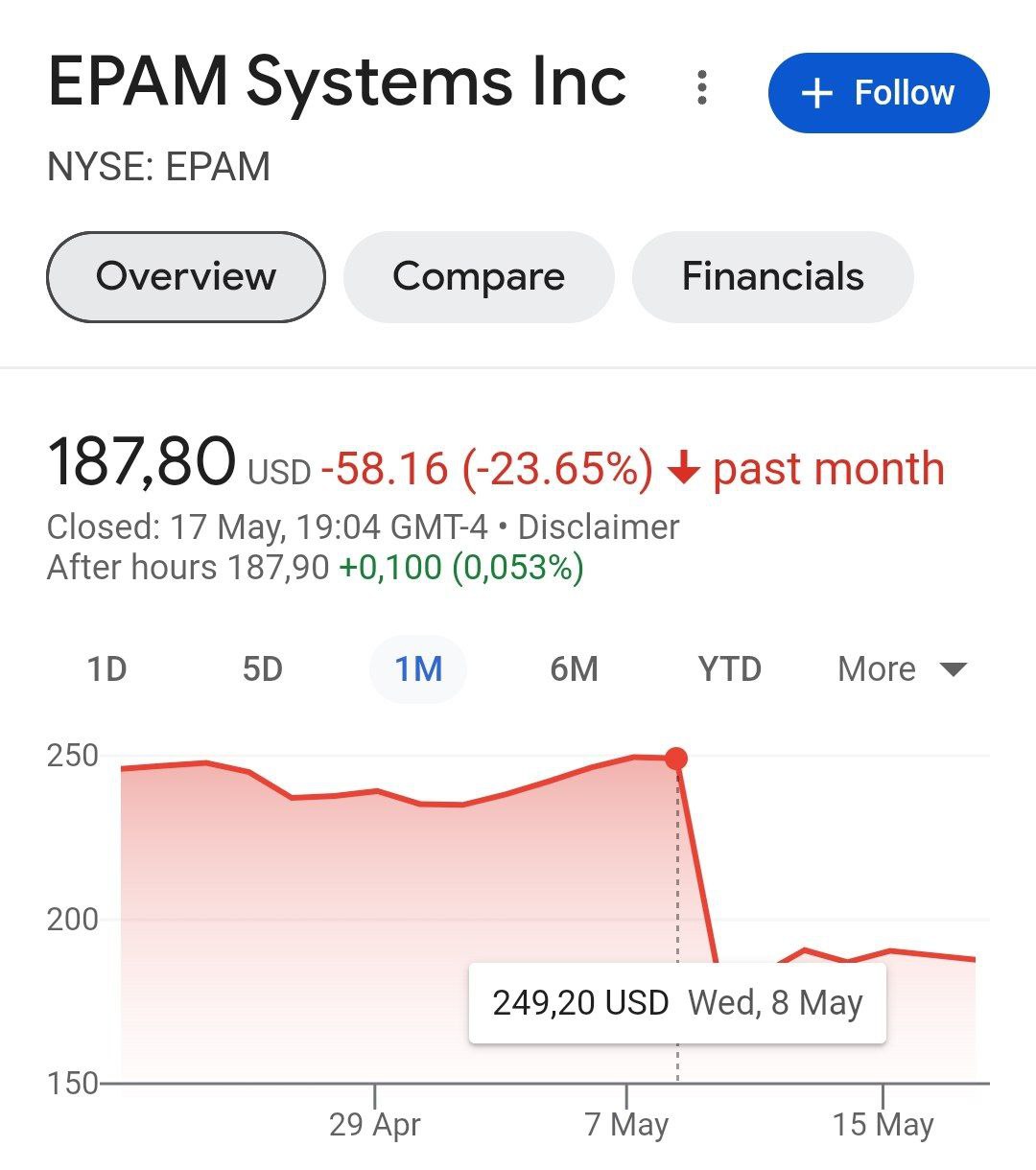Уехавшая из России айти-компания EPAM начала терять бизнес за границей. За 10 дней акции компании упали на 23%.