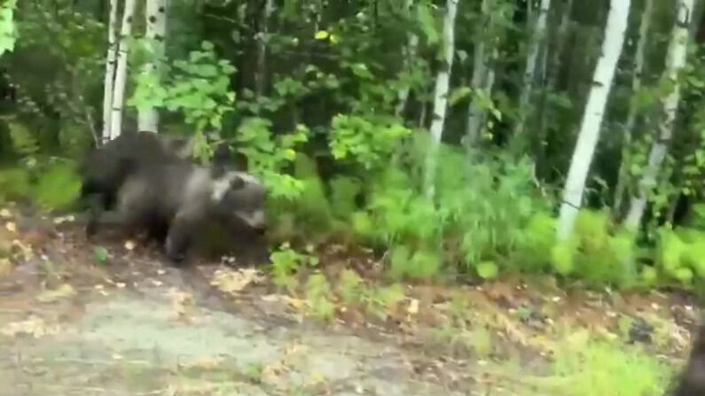 Семья медведей напугала водителя на пустой дороге в ХМАО