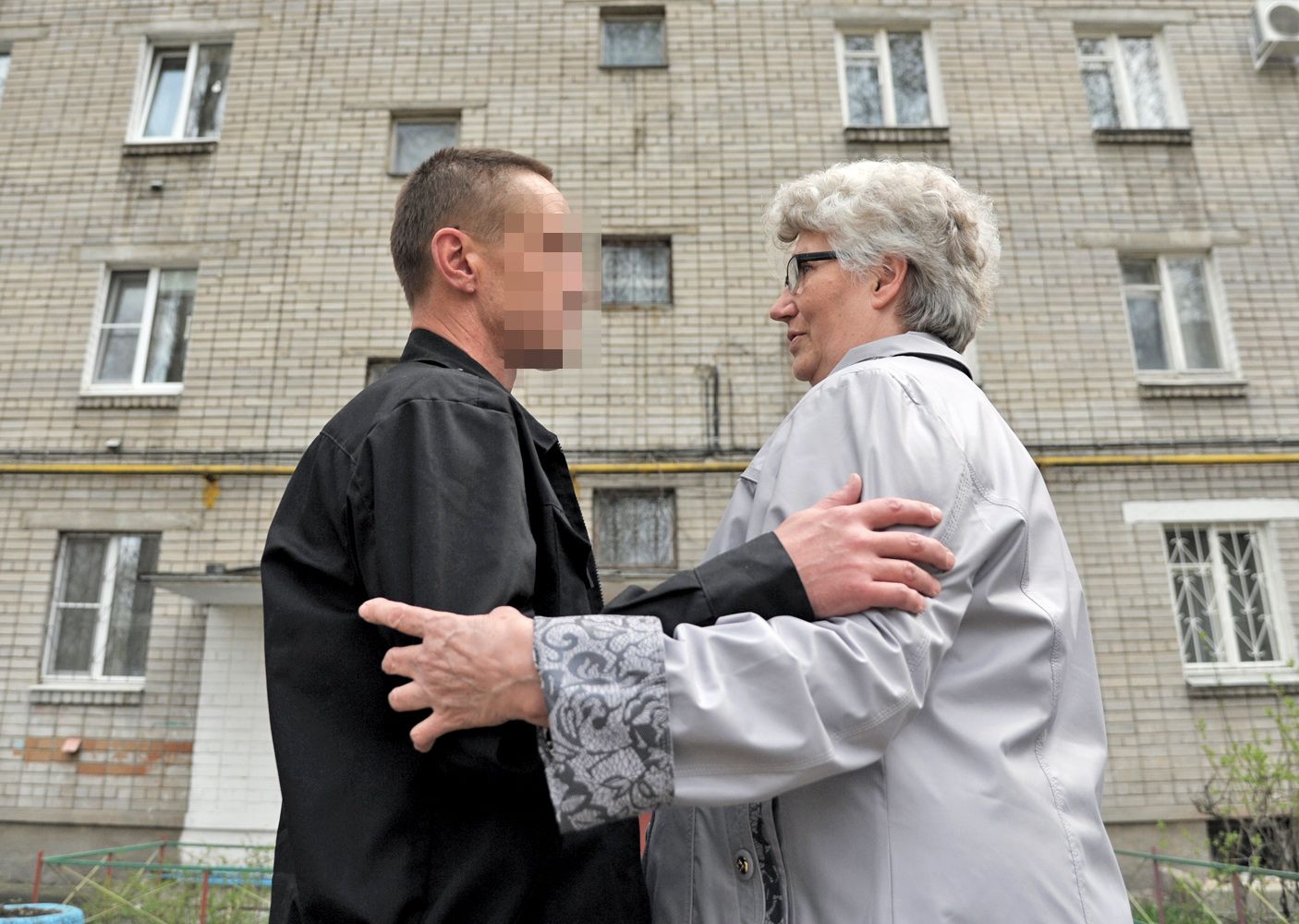 Открылась дверь подъезда, и на улицу, с трудом переставляя ноги, вышла Тамара Васильевна. Увидев сына, женщина оперлась на палку и заплакала. Толик бросился ей навстречу.