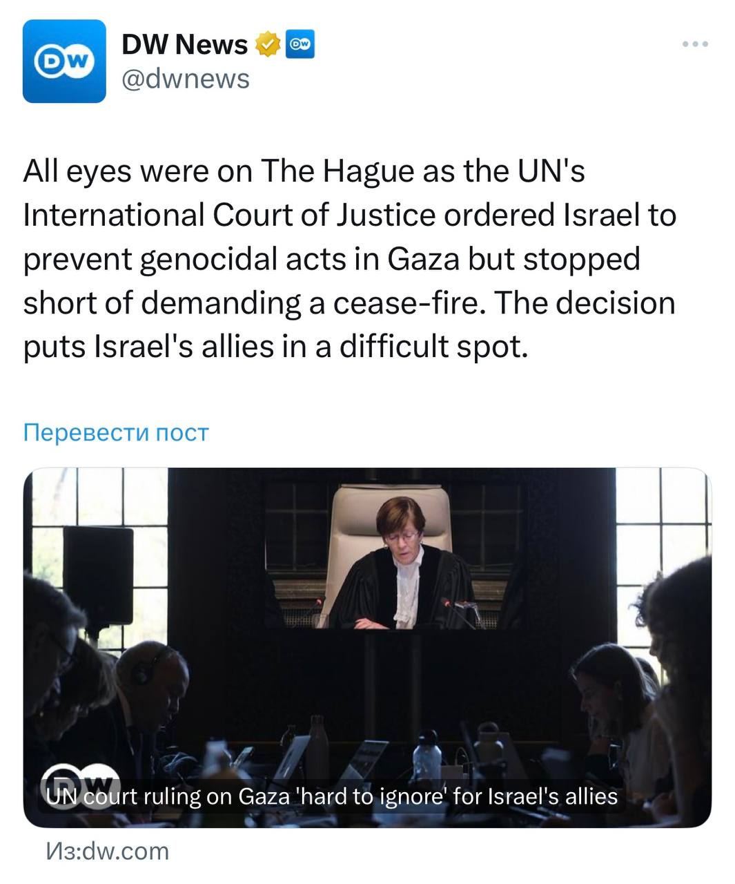 Международный суд ООН обязал Израиль предотвратить акты геноцида в секторе Газа, но не стал требовать прекращения огня. Это решение ставит союзников Израиля в трудное положение.