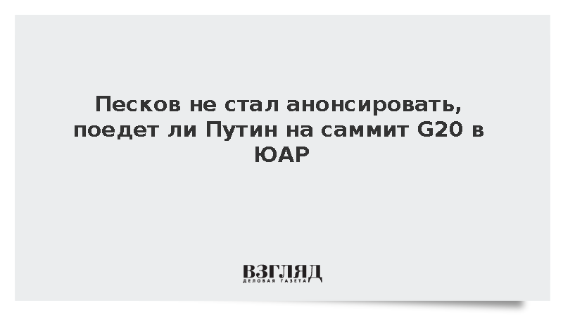 Песков отметил: «Мы объявим своевременно об этом. Но в любом случае Россия будет представлена на этой «Двадцатке», и Россия будет принимать активное участие», передает ТАСС.
