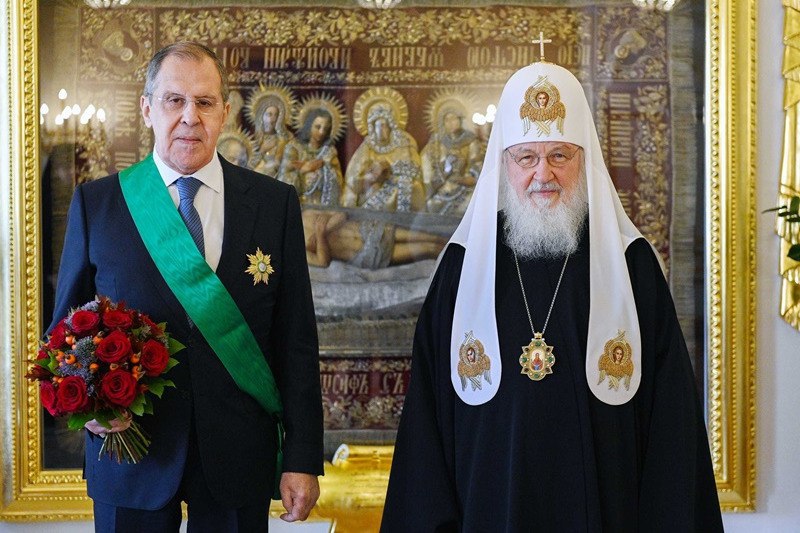 Патриарх Кирилл поздравил министра с 75-летием, поблагодарил за «многолетнее и плодотворное сотрудничество» МИД с РПЦ и наградил орденом благоверного великого князя Александра Невского I степени.