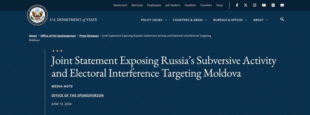 «Кремль хочет подорвать демократические институты Молдовы в преддверии октябрьских президентских выборов и референдума о членстве в ЕС»,