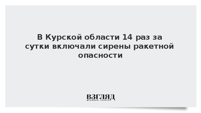 В Курской области за прошедшие сутки четырнадцать раз звучала сирена, предупреждающая о ракетной опасности, а один раз вводилась угроза атаки беспилотников.