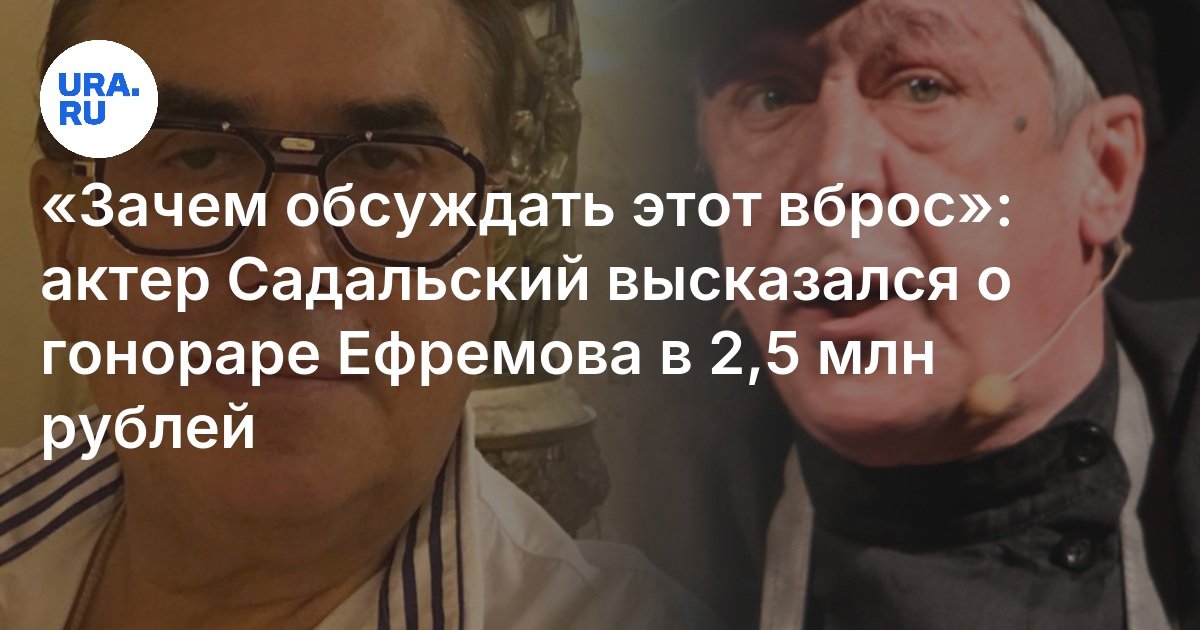 Актер Станислав Садальский не понимает раздутой шумихи вокруг предполагаемого гонорара Михаила Ефремова в размере 2,5 млн рублей. В разговоре с URA.RU артист призвал обратить свое внимание на других персон, которые получают гораздо больше.