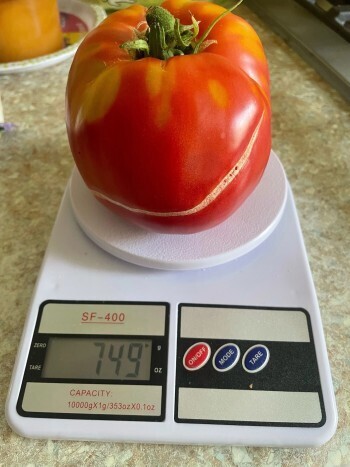 Талантливая огородница не поленилась и взвесила гигантский овощ. Оказалось, что помидор сорта "Бабушкин секрет" весит 749 гр. Хотя считается, что обычно такие большие овощи теряют свой вкус, в этот раз плод получился мясистым и вкусным. "Хозяйка довольна. Она посадила овощ впервые и теперь собирается продолжать выращивать этот сорт", - рассказывают журналисты.
