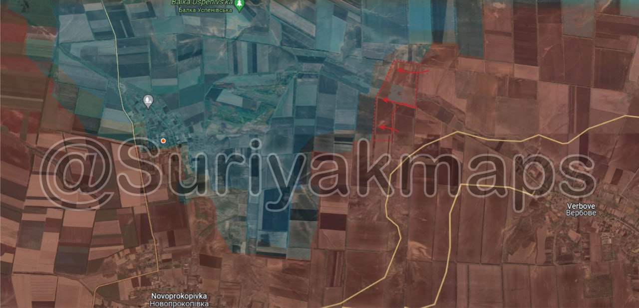 1. В районе Работино (в основном сейчас успехи к западу и северо-западу от Вербового, напрямую Работино продавить пока не получается).