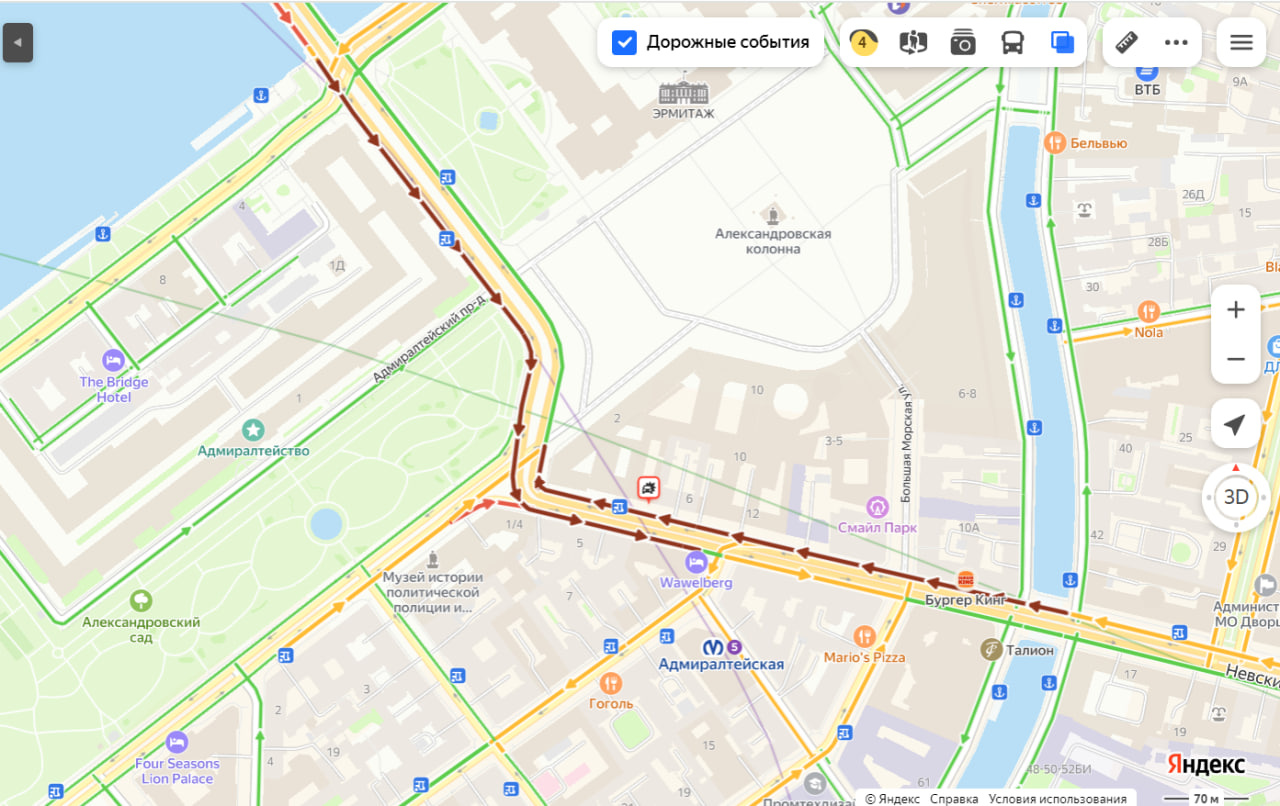 В целом загруженность дорог Петербурга составляет, по данным на 8:50, обычные 4 балла.