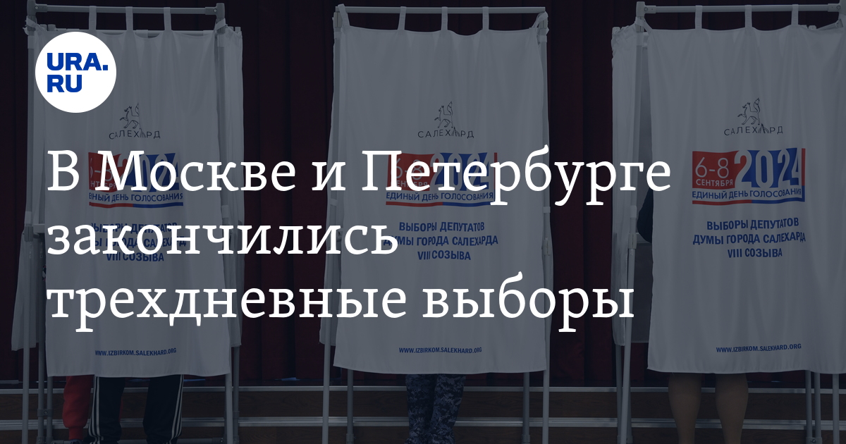 В Москве и Санкт-Петербурге завершились трехдневные выборы. В Москве жители выбирали депутатов Московской городской Думы, а также муниципальных депутатов в ТиНАО и районе Куркино. В Санкт-Петербурге проходили выборы нового губернатора, на которых 8 сентября действующий глава региона Александр Беглов отдал свой голос.