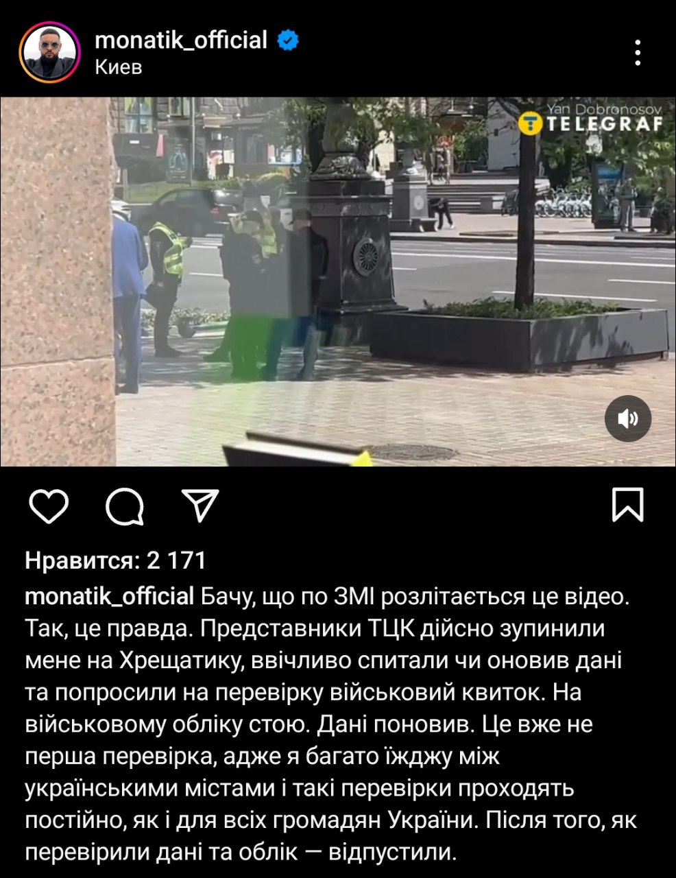 Монатик рассказал подробности встречи с ТЦК в центре Киева