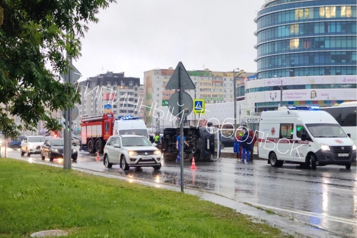 В Тобольске произошло ДТП с участием машины скорой помощи. Она столкнулась с другим автомобилем и завалилась на бок. Авария случилась вечером 19 июня.