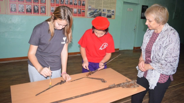 – На глубине около метра в ковш экскаватора попал металлический предмет, покрытый ржавчиной. Рядом откопали еще два. Юнармейцы с помощью кисточки аккуратно очистили их от земли. Выяснилось, что это три штык-ножа от винтовки Мосина. Два погнуты, у одного сильно повреждено крепление. В Верхнем Карачане и раньше находили фрагменты оружия времен Гражданской войны. Несколько лет назад в районе улицы Первомайской бригада строителей во время земляных работ обнаружила винтовку Мосина. Деревянные части оружия – цевье и приклад – сгнили. Неудивительно – ведь в земле они пролежали более 100 лет. Металлические детали сохранились, хоть и сильно заржавели. Местные жители передали находку в школьный музей, – рассказала Любовь Пекач.
