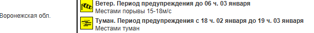 Предупреждение о явлении продлится с 18:00 2 января до 19:00 3 января.
