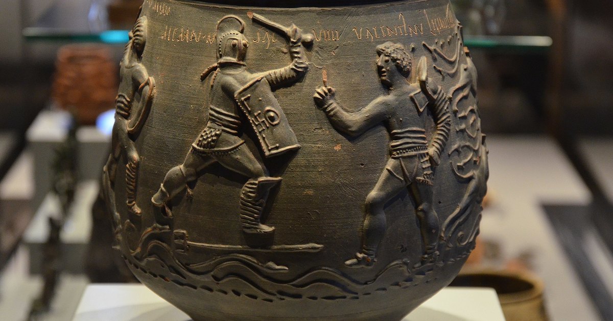 Оказалось, что вазу изготовили в Камулодунуме (ныне Колчестер) — в первой столице Римской Британии примерно в 160-200 годах нашей эры. Бойцами, изображенными на сосуде, были Мемнон (слева) и Валентин (справа). Рядом с именем Мемнона стоят инициалы SAC и цифра VIIII — они означают, что он сражался девять раз и выжил.
