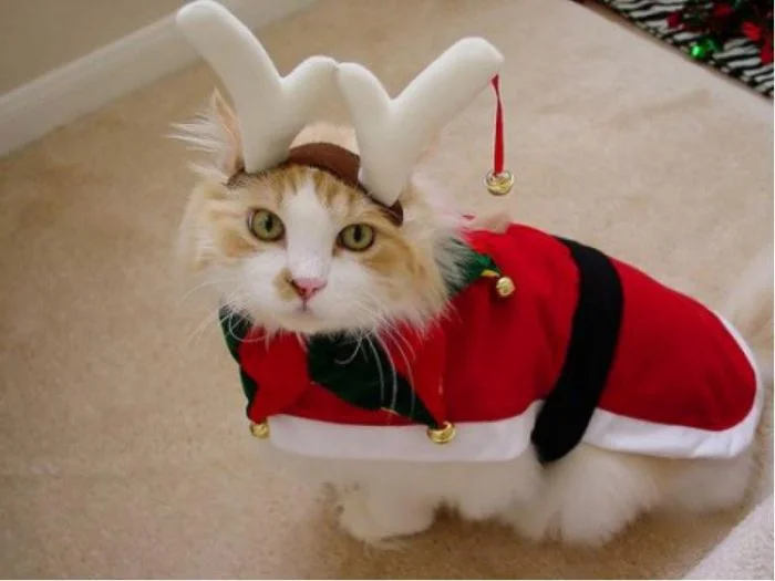 Считается, что мода зародилась ещё в Древнем Египте, где кошек почитали как богов и украшали драгоценными бласлетами и кольцами. При дворах европейских монархов кисы тоже фигурировали в шляпках и платьях. Тенденция сохранилась и в современных реалиях. И теперь котикам особенно достаётся на зимние праздники. Их наряжают в колпачки, цепляют рожки, придают образы зимних сказочных персонажей. Вот только многие котейки этому не особенно рады, что читается по их возмущённым или равнодушным мордашкам. Но они стоически терпят новогодние закидоны своих хозяев, потому что искренне любят их.