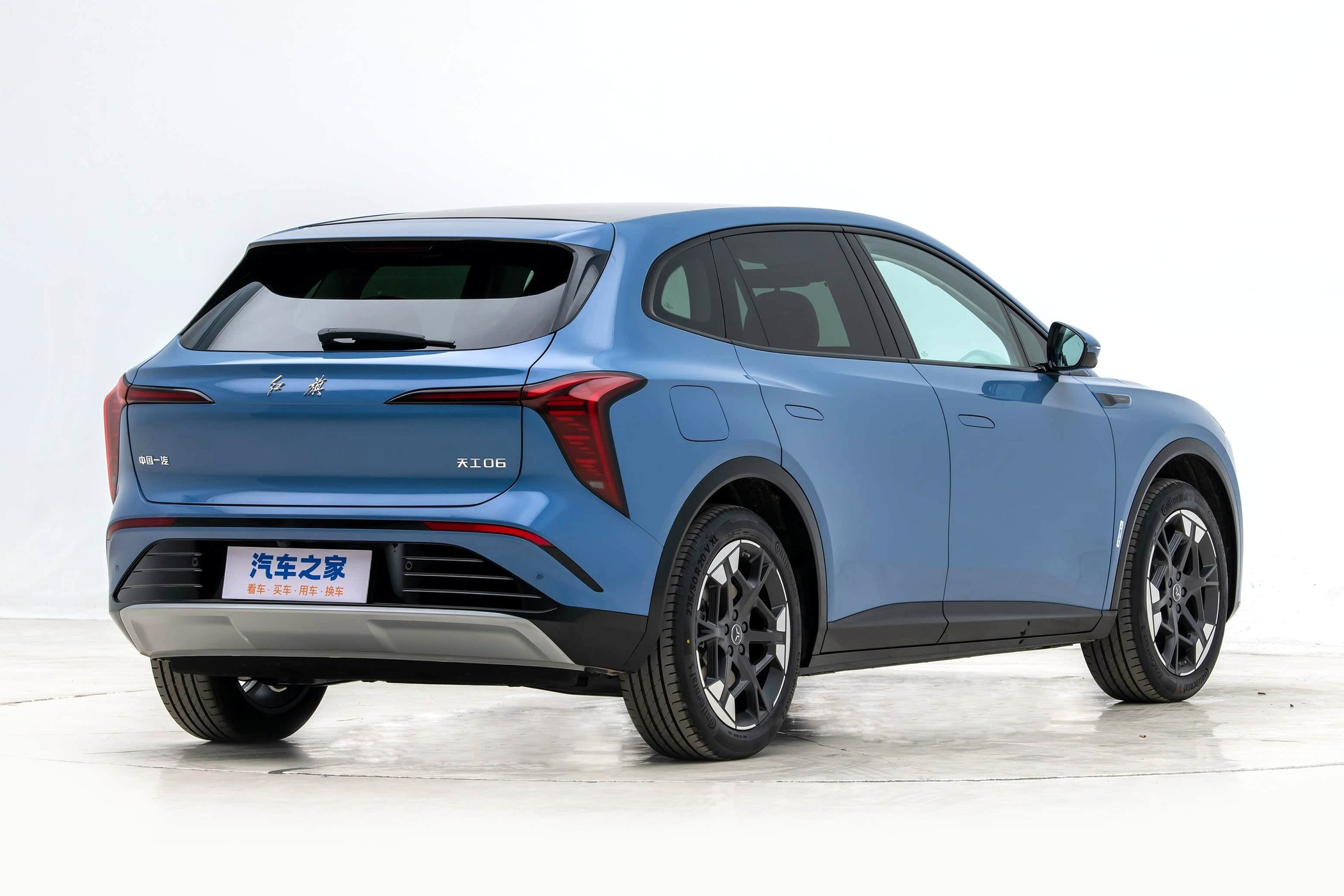 Свежайшая новинка Hongqi — это среднеразмерный электрический кроссовер из линейки Tiangong, название которой можно перевести с латинизированного китайского на русский как «божественное творение» или «небесное мастерство». В линейке Tiangong уже есть крупный пятиместный кроссовер Tiangong 08 и среднеразмерный седан Tiangong 05. Габаритная длина кроссовера Tiangong 06 — 4750 мм, ширина — 1900 мм, высота — 1640 мм, колёсная база — 2900 мм. Передняя подвеска — на двойных поперечных рычагах, задняя — независимая пятирычажная. Штатные колёса — 19- либо 20-дюймовые.