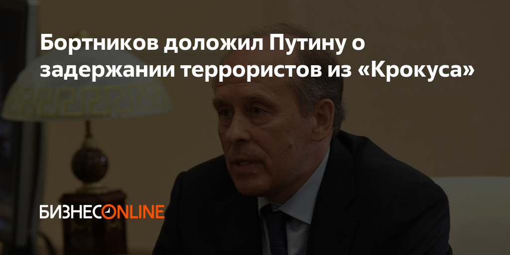 Директор ФСБ Александр Бортников доложил президенту России Владимиру Путину о задержании 11 человек, в том числе 4 террористов, участвовавших в теракте в «Крокус сити холле». Об этом сообщает РИА «Новости» со ссылкой на пресс-службу Кремля.