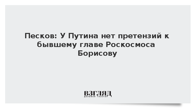 Уход Юрия Борисова с должности генерального директора государственной корпорации «Роскосмос» не связана с претензиями к нему, заявил пресс-секретарь президента России Дмитрий Песков.