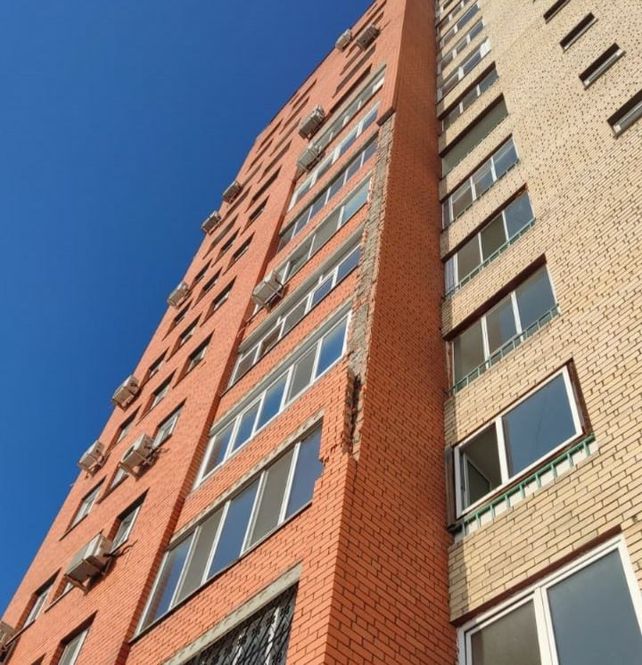 Сегодня в ЕДДС г. Уфы поступила информация о том, что по адресу: ул. Кирова, 99/2, произошло обрушение облицовочного кирпича с фасада дома.
