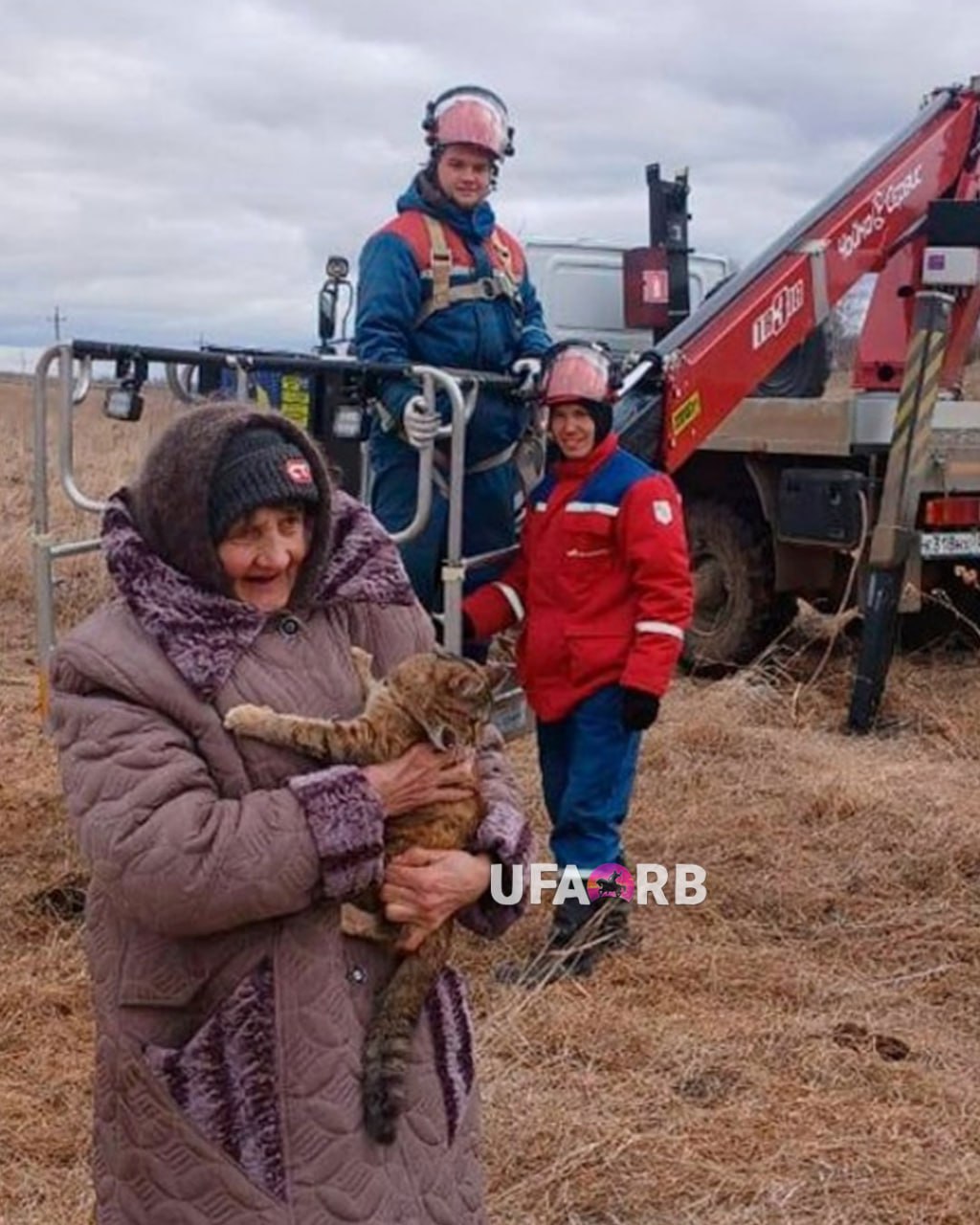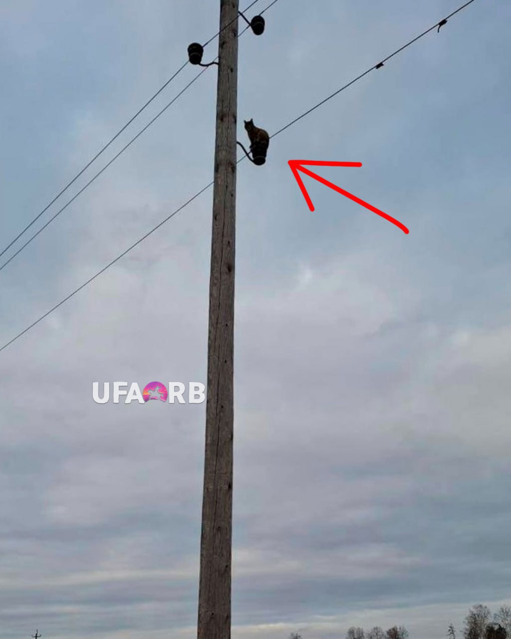 В Башкирии кошка сидела на столбе два дня. Пока не пришла помощь