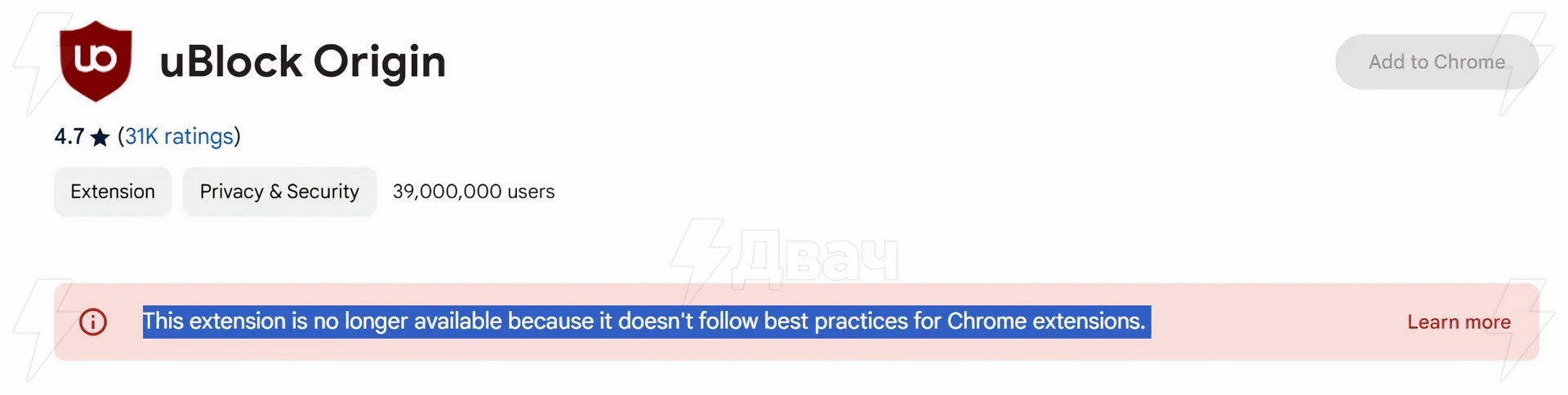 Напоминаем, как отложить переход на Manifest V3 до июня 2025 года и продолжить пользоваться uBlock Origin: