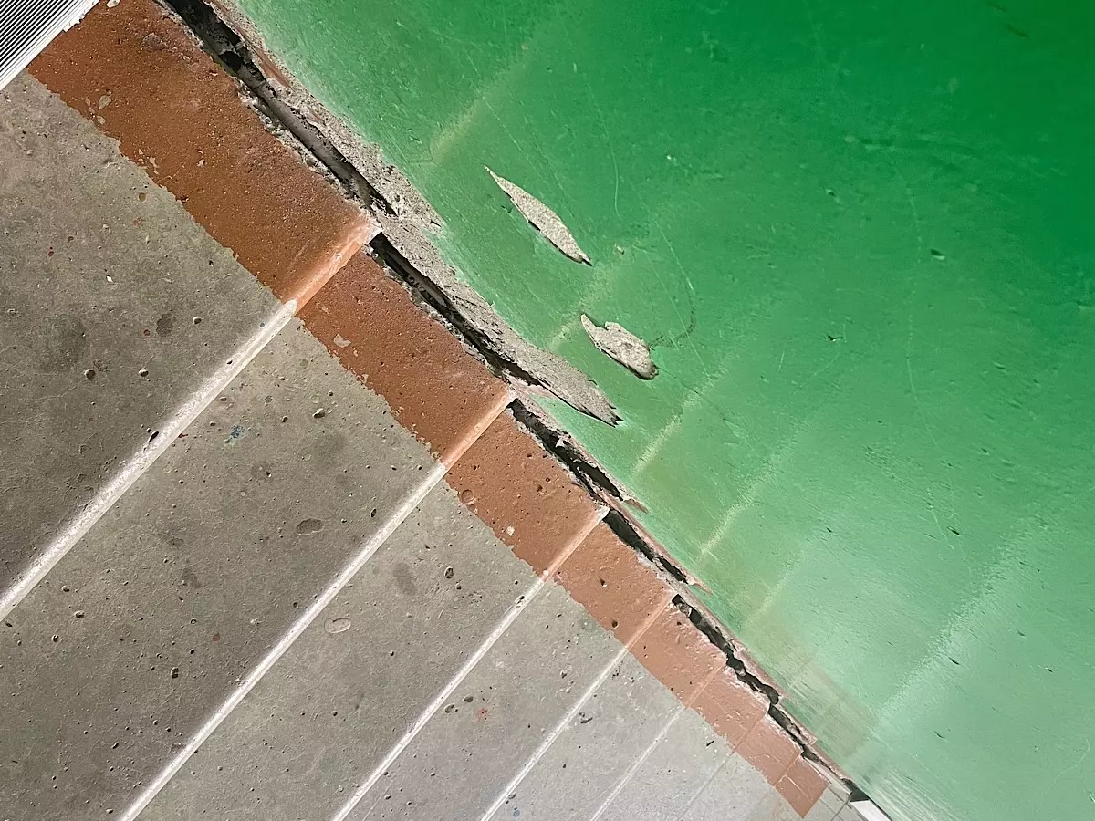 По словам главного по подъезду Сергея Борисенко, в подъезде уже давно образовались глубокие трещины. Люди даже не могли нормально закрыть входные двери, а прохождение по лестничной площадке могло быть опасным, поскольку ступеньки вовсе отошли от несущей стены.