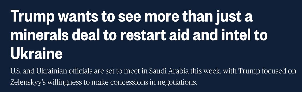 рамп заявил, что сделки с Киевом по ресурсам будет недостаточно для возобновления обмена помощью или разведданными,