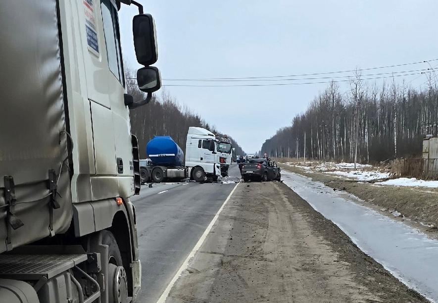 Водитель «Логана» разбился о встречный тягач с цистерной на трассе А-120 под Мгой