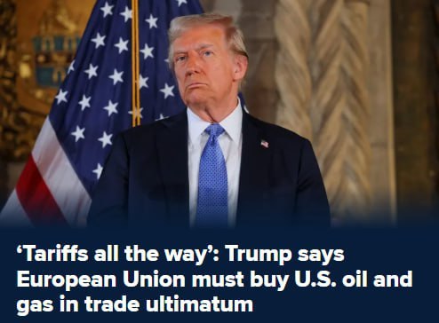 Трамп заявил Евросоюзу, что они должны покрыть свой большой торговый дефицит с США масштабной покупкой нефти и газа США. В противном случае им введут пошлины на все.
