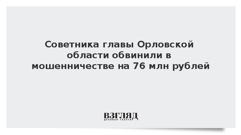 Советника губернатора Орловской области Сергея Лежнева обвиняют в мошенничестве на 76 млн рублей, сообщили в пресс-службе районных судов региона.