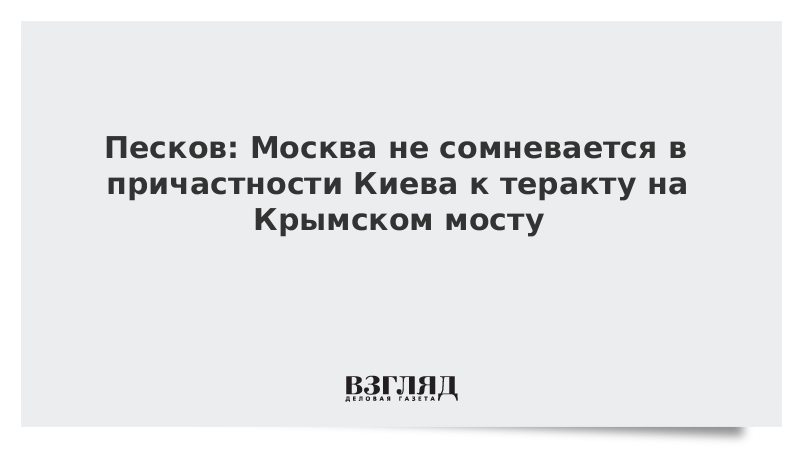 Москва изначально знала, что за атакой на Крымский мост стоит Киев, в этом нет сомнений, заявил пресс-секретарь президента Дмитрий Песков.