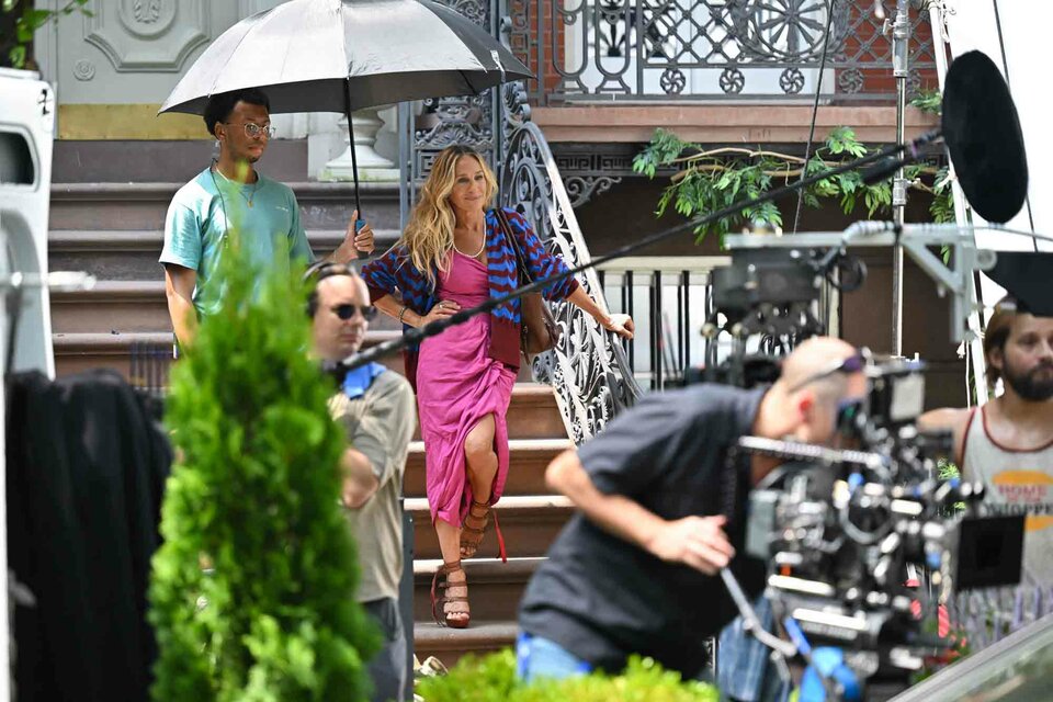 Ну и конечно, Нью-Йорк распирает от съемок новых сериалов. Летом в городе работали над третьим сезоном исторического «Позолоченного века» про противостояние старых и новых денег c Кристин Барански и Синтией Никсон, над продолжением комедийного детектива «Покерфейс» с Наташей Лионн, политическим триллером Zero Day с Робертом Де Ниро, который в перерыве от дневной работы на своим кинофестивалем Tribeca тут играл роль президента США. Также снимался третий сезон «И просто так», в котором мне посчастливилось засветиться.