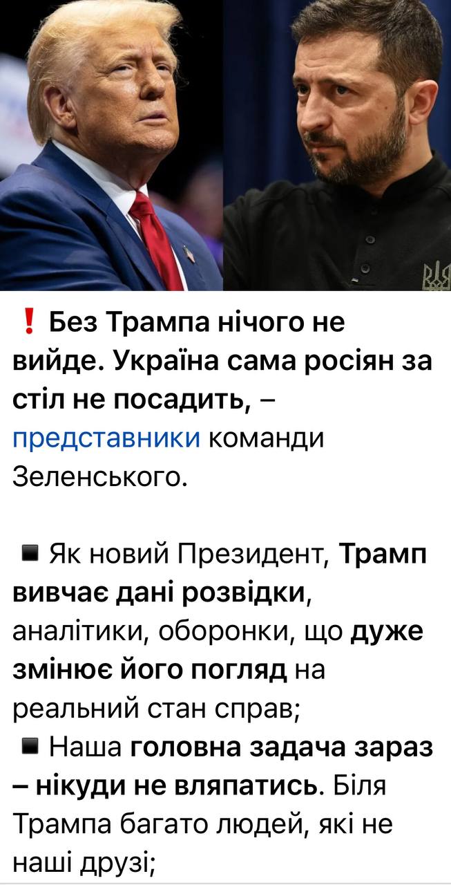 ▪️Как новый Президент, Трамп изучает данные разведки , аналитики, оборонки, что очень изменяет его взгляд на реальное положение дел;