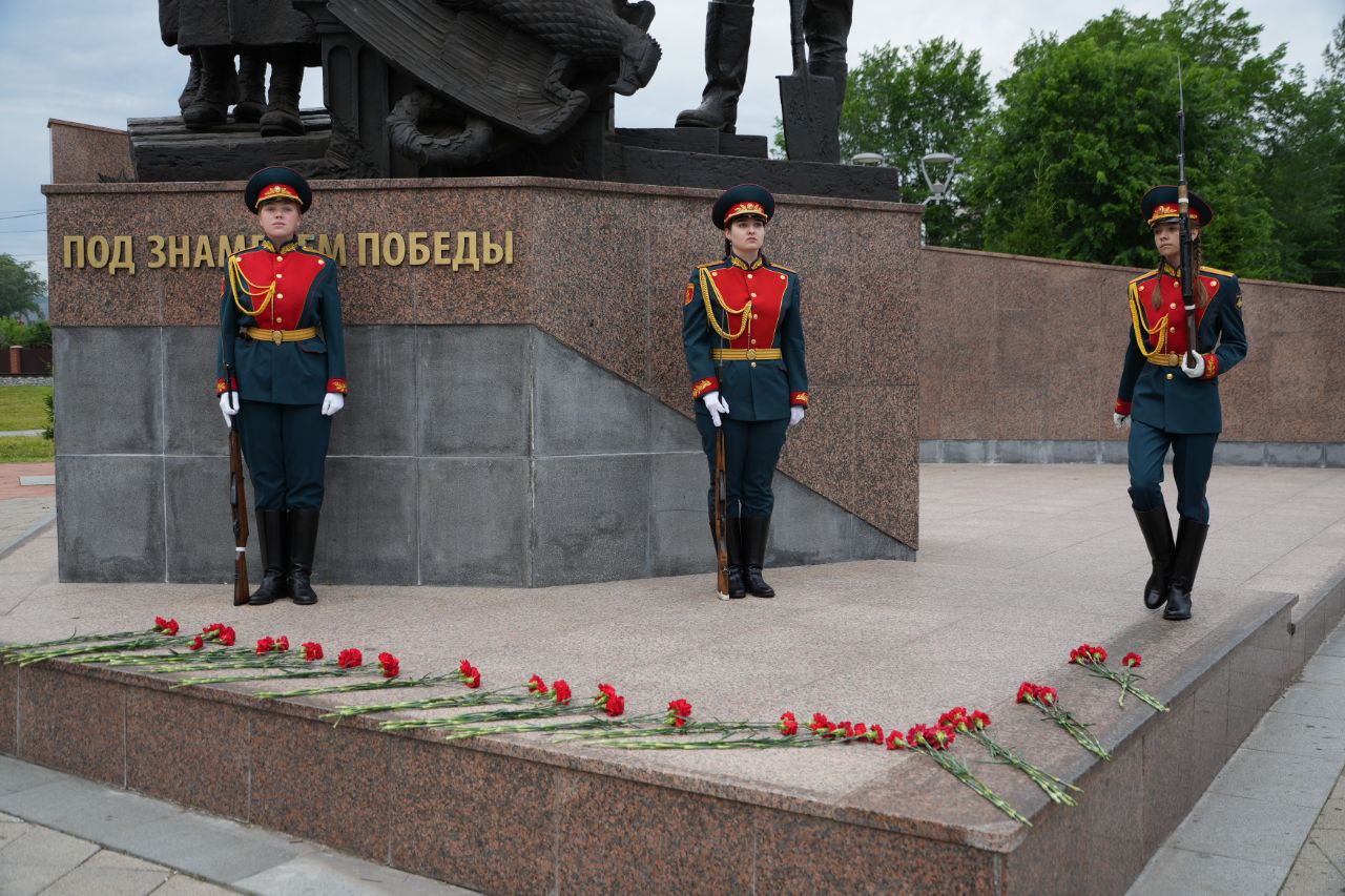 Сегодня утром красноярцы собрались в парке Героев перед монументом «Под знаменем Победы», чтобы отдать дань уважения тем, кто сражался за Родину в годы Великой Отечественной войны.