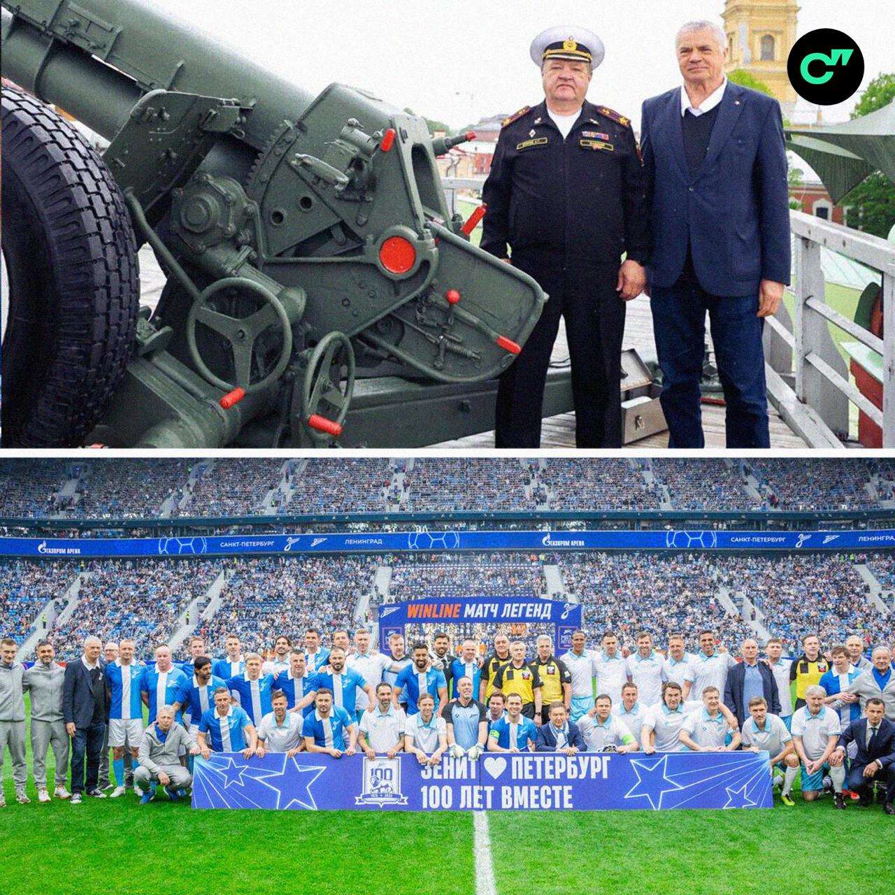 🇷🇺🏆 «Зенит» пышно отметил столетие в Петербурге матчем легенд – на поле вышли Аршавин, Кержаков и другие бывшие звезды клуба, а Медведев перед игрой выстрелил из пушки в Петропавловской крепости и сказал: