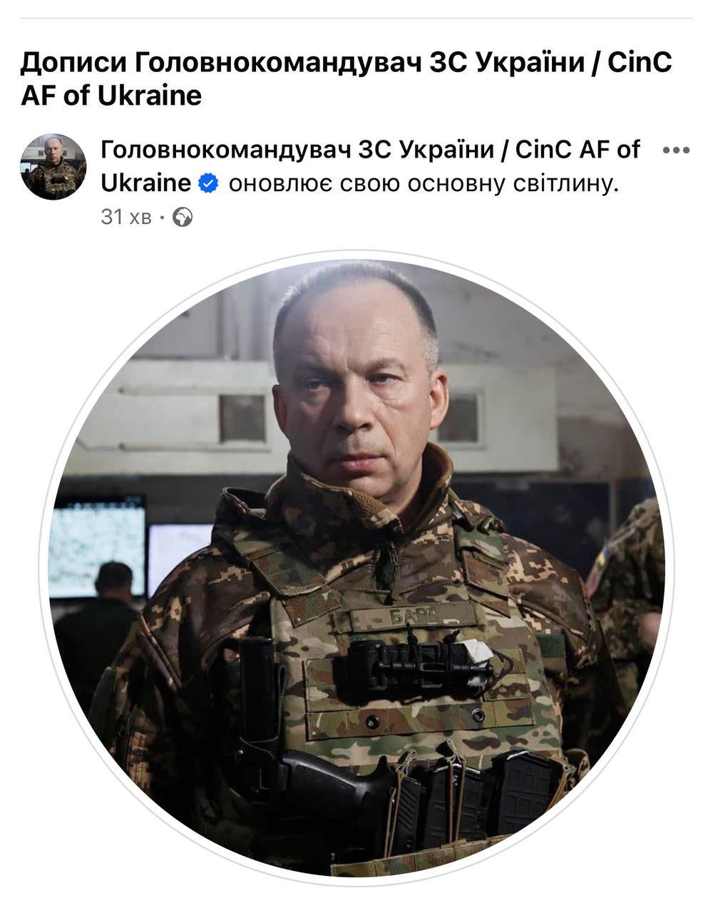 πΊπ¦ΠΠ° ΠΎΡΠΈΡΠΈΠ°Π»ΡΠ½ΠΎΠΉ ΡΡΡΠ°Π½ΠΈΡΠ΅ ΠΠ»Π°Π²Π½ΠΎΠΊΠΎΠΌΠ°Π½Π΄ΡΡΡΠ΅Π³ΠΎ ΠΠ‘Π£ Π² Facebook ΠΎΠ±Π½ΠΎΠ²ΠΈΠ»ΠΈ ΠΎΡΠ½ΠΎΠ²Π½ΠΎΠ΅ ΡΠΎΡΠΎ.