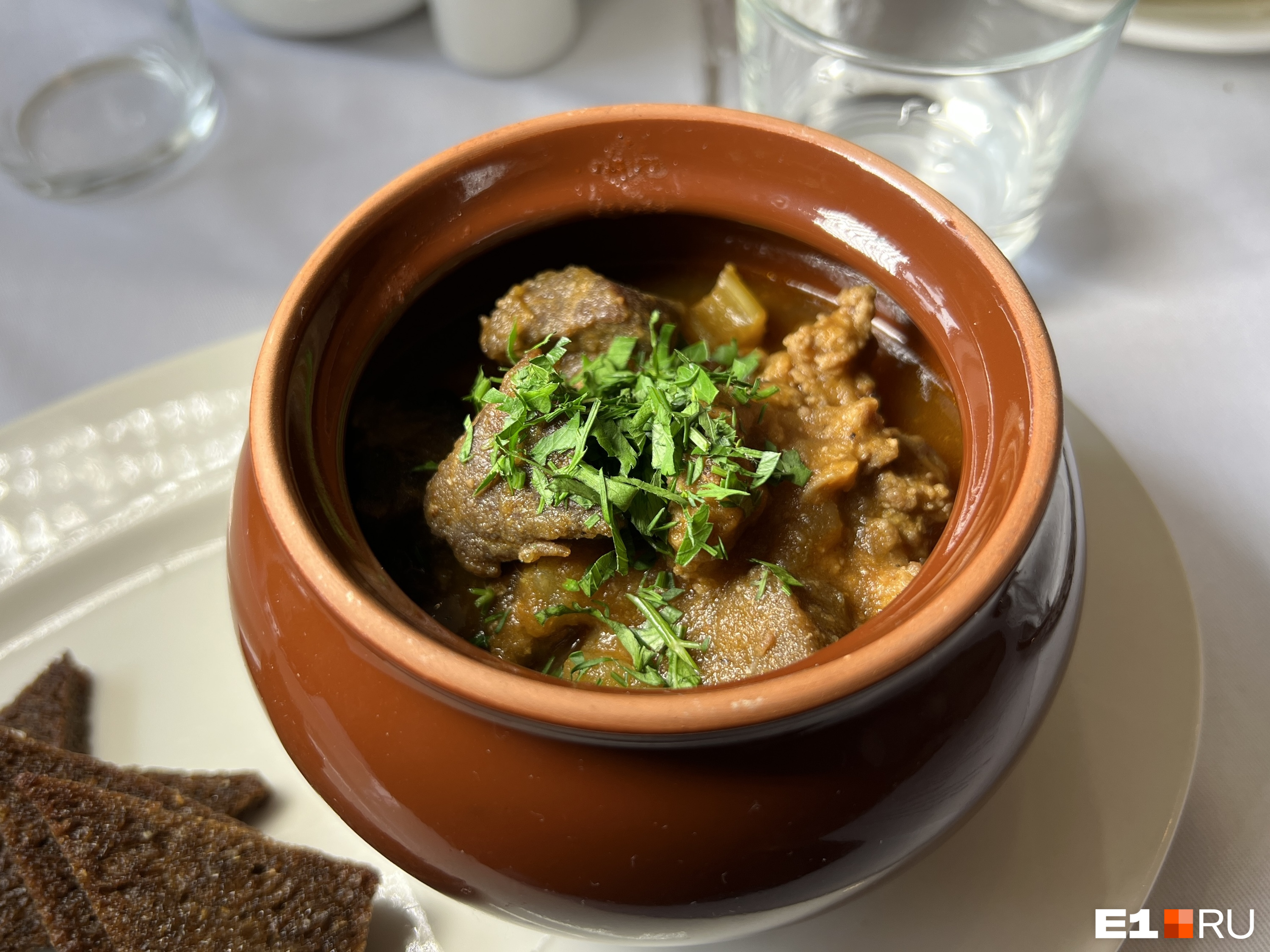 В горячее из трех видов мяса с пивом и водкой гости рекомендовали добавить дичь — так еда приобретет по-настоящему уральский вкус. Алкоголь в жарком совсем не чувствовался, ведь мясо четыре часа готовили в казане. А шоколадный омлет оказался больше всего похож на стандартное блюдо — по сути, это блинчик с ягодным соусом и мороженым.