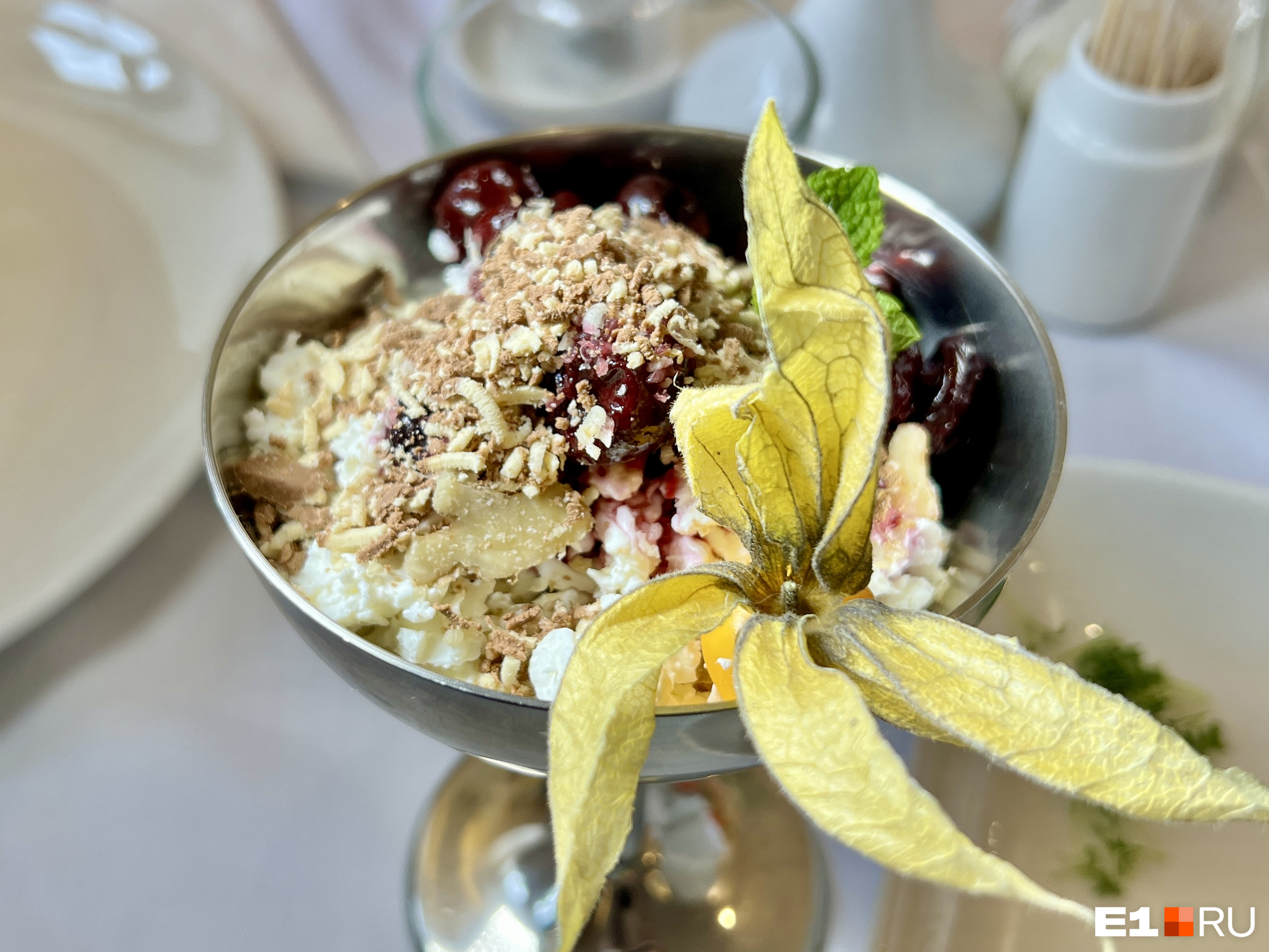 4. Десерт «Богатство Урала» с шестью видами ягод, физалисом и мятой — 330 рублей.