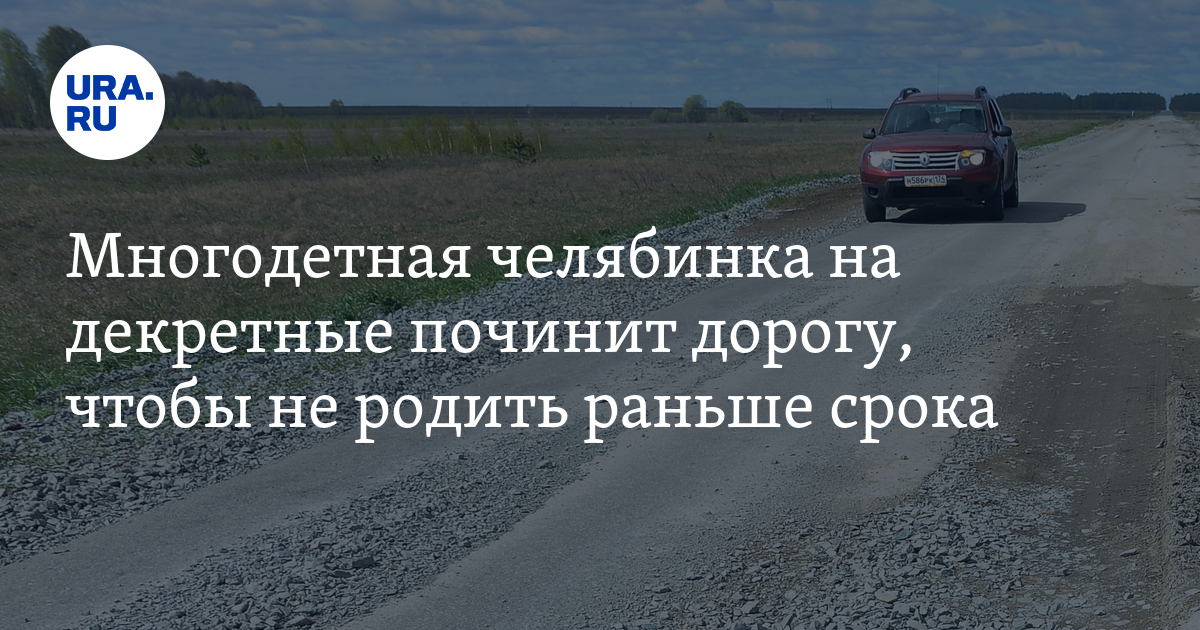 Многодетная жительница села Григорьевка (Челябинская область) Ольга Сегаль отремонтирует на декретные выплаты дорогу, чтобы не родить на ней раньше срока. Беременная седьмым ребенком мать рассказала, что проезжая по ухабистому пути, испытывает болезненные ощущения.