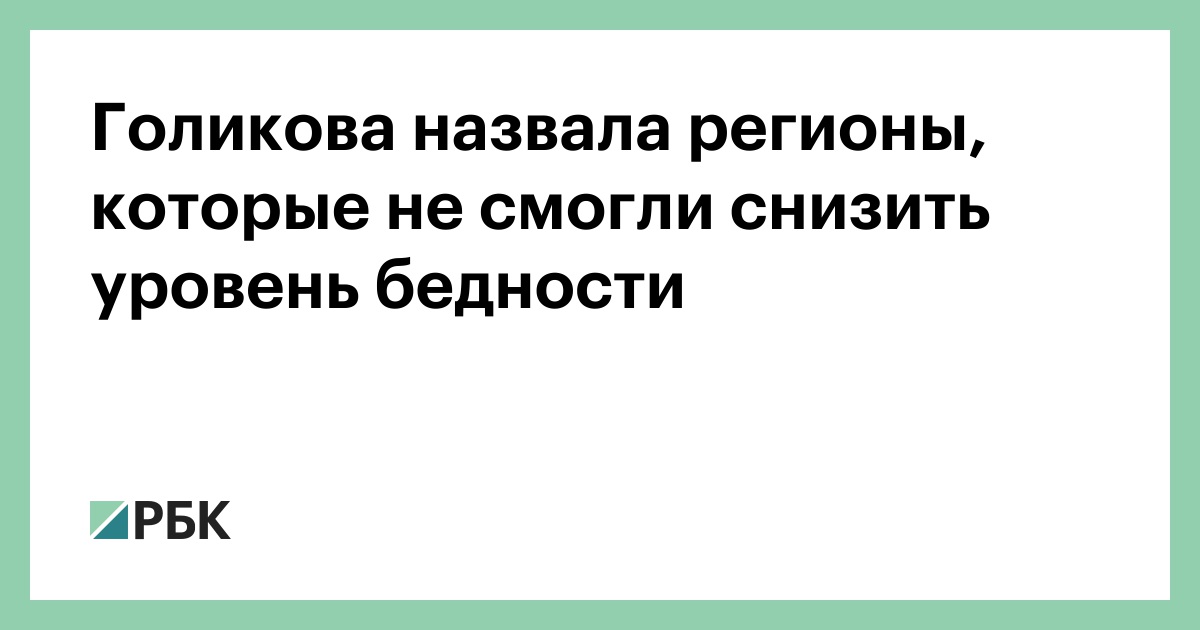 «По итогам 2022 года 76 регионов смогли обеспечить снижение уровня бедности в соответствии с планируемыми значениями, девять, к сожалению, не смогли добиться результатов и решить эту проблему. Это республики Хакасия, Ингушетия, Адыгея, Северная Осетия — Алания, Коми, Калмыкия, Карачаево-Черкесская республика, Оренбургская область, Ненецкий автономный округ», — сообщила Голикова.