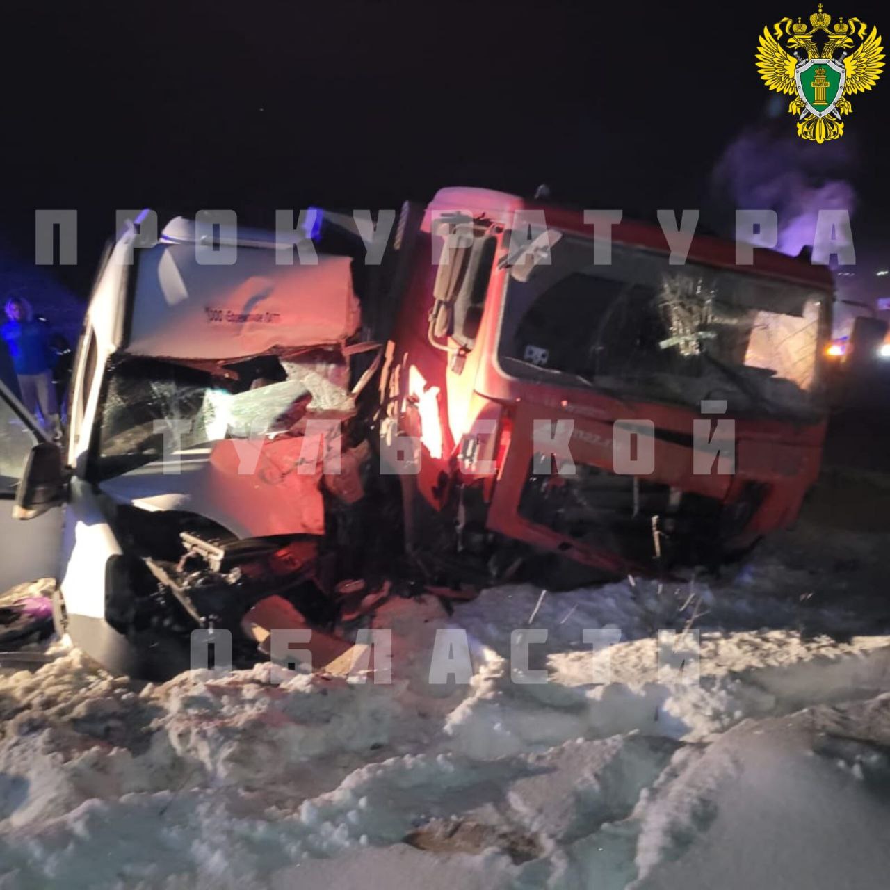 По предварительной информации, вечером 13 января произошло лобовое столкновение грузового автомобиля с маршрутным транспортным средством, перевозящим пассажиров по маршруту «Тула – Ефремов».